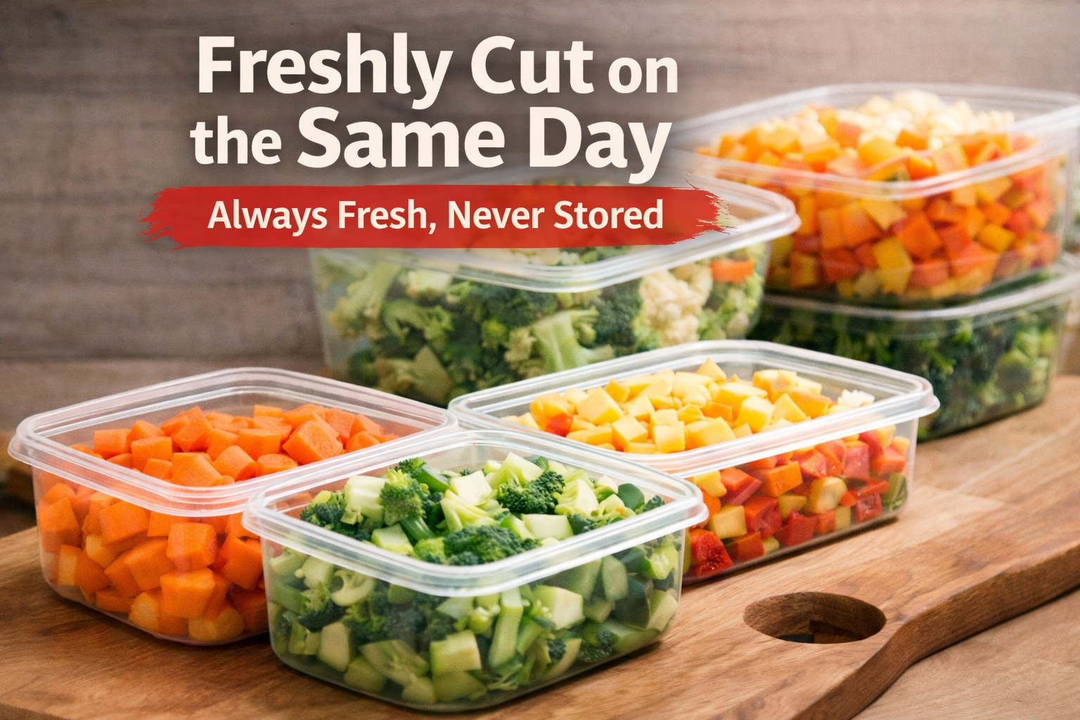 Farm-fresh vegetables, sourced daily from trusted local farmers Cut only after order, ensuring maximum freshness No preservatives or chemicals used